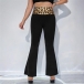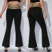 These statement pants are a bold and trendy choice for adding a touch of edgy style to your wardrobe. The leopard print pattern along the waist is a timeless and fierce print that adds a pop of personality to any outfit. The wide-leg cut is chic and on-trend, offering a relaxed and flowy fit that is both comfortable and stylish. Pair them with a simple white blouse or opt for a graphic tee and sneakers for a more casual and edgy vibe.