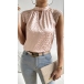 Fashion Leopard Printed Lace Spliced Mock Neck Shirt