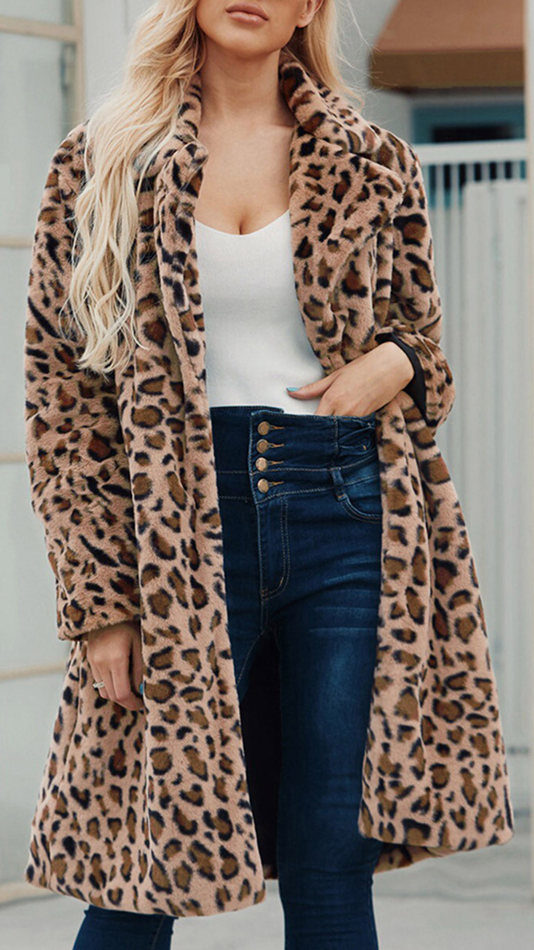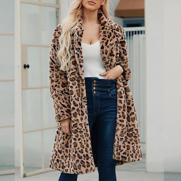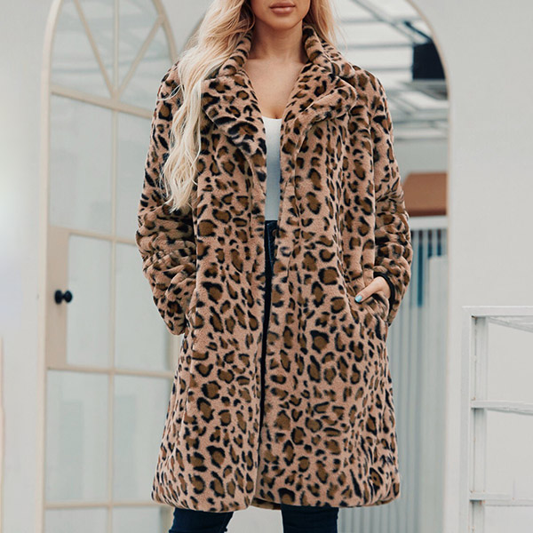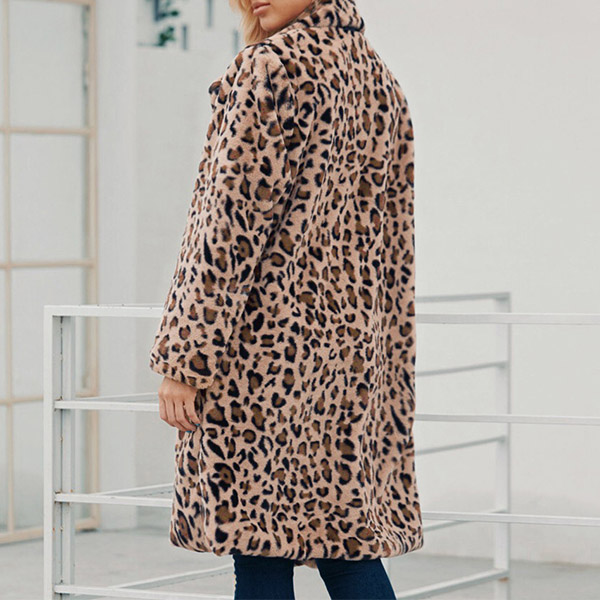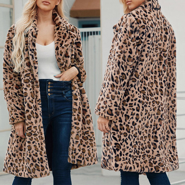 This coat is perfect for those cold winter days! It is made with a soft, plush fabric that will keep you warm and cozy all day long. The leopard print is trendy and chic, and the lapel detail adds a touch of style. This coat is sure to become your new favorite!