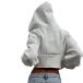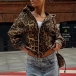 This jacket features a bold leopard print, long sleeves, a hood, and a cropped length, creating a stylish and edgy look that is perfect for making a fashion statement.