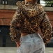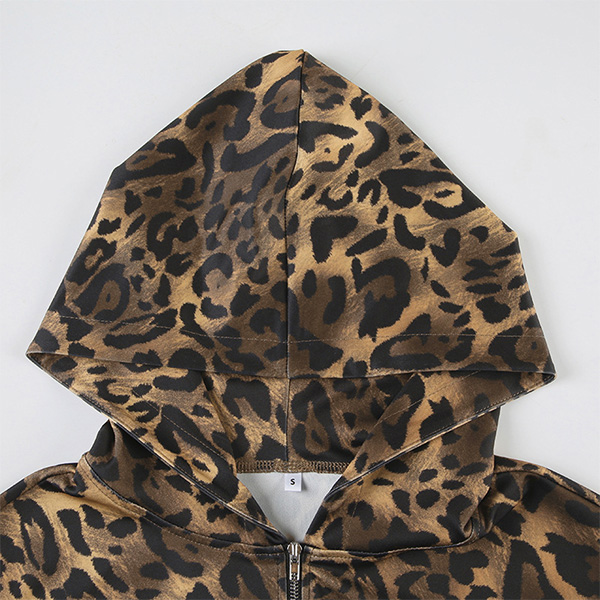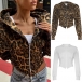 Fashion Leopard Printed Long Sleeve Hooded Crop Jacket