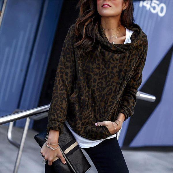 Fashion Leopard Printed Long Sleeve Hooded Sweatshirt