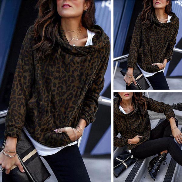 For a simple,casual and relaxed autumn look,you can count on this sweatshirt. The leopard printed details make this piece look so eye-catching. Finished with long sleeve and hooded silhouette,this piece also can promise you a comfortable day with its soft and breathable fabric. Add one to your casual wardrobe ensemble.