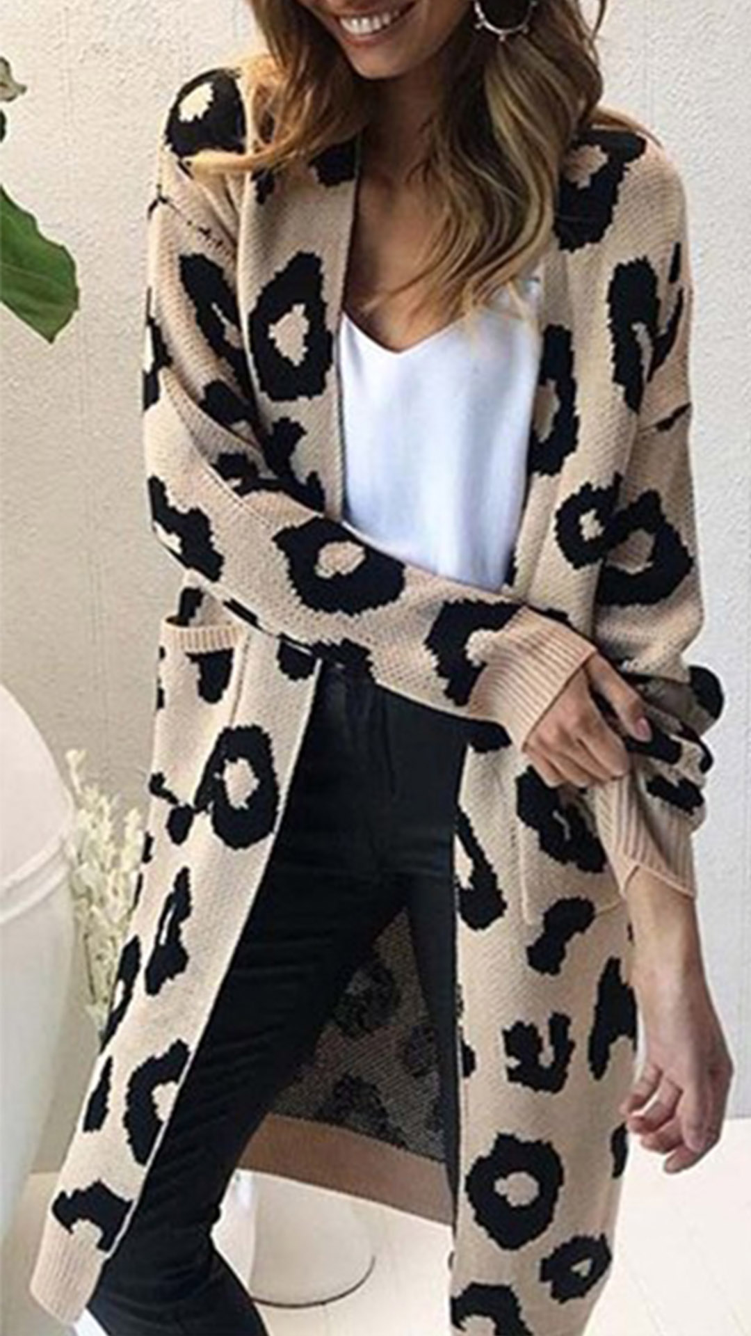 For your spring and autumn days,the knit cardigan can be your wise choice. So we suggest you this piece. The leopard printed details make this piece look so eye-catching and stylish. Finished with long sleeve and a loose silhouette,this piece not only can keep you warm,but also can be matched with different style outfits.