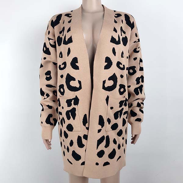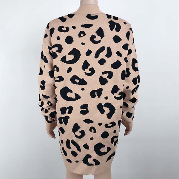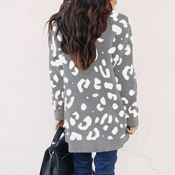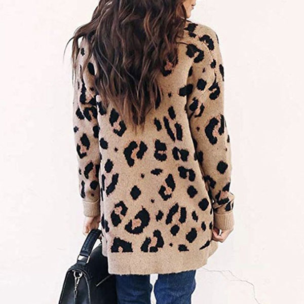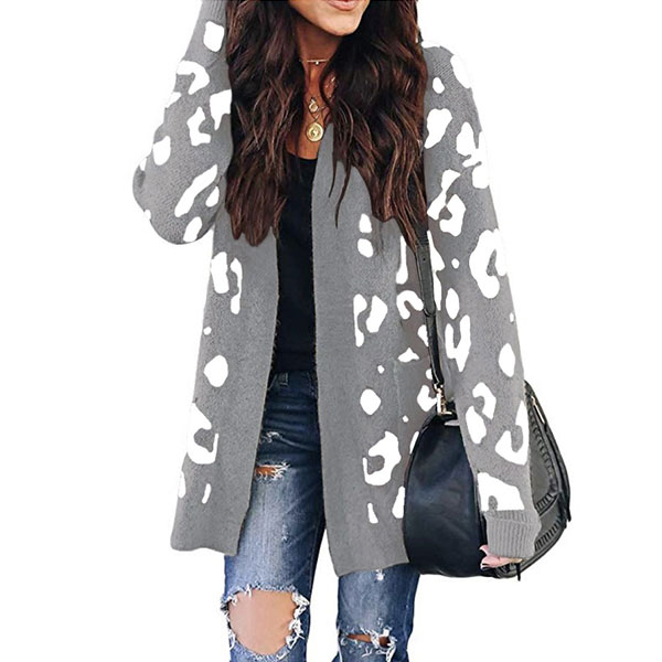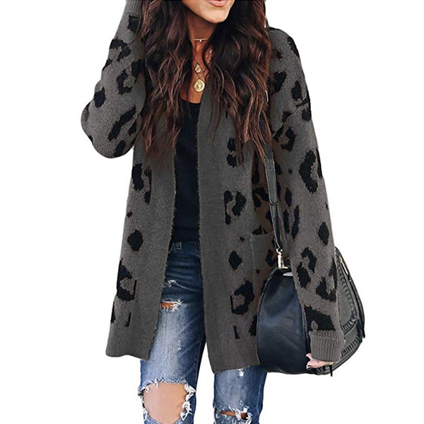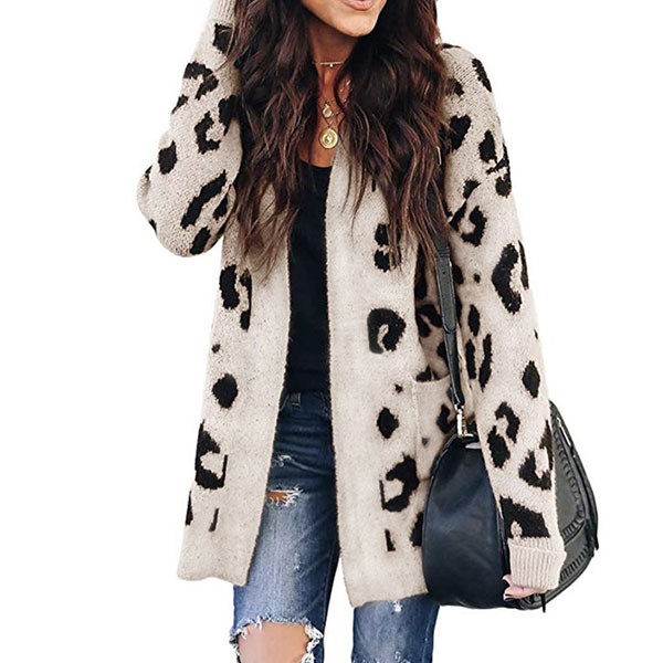 This knit cardigan can give you a perfect transition from the summer days to the autumn days. The leopard printed details make it look so chic and eye-catching. Finished with long sleeve and a loose silhouette,this cardigan not only can keep you warm,but also can offer you a stylish autumn look.