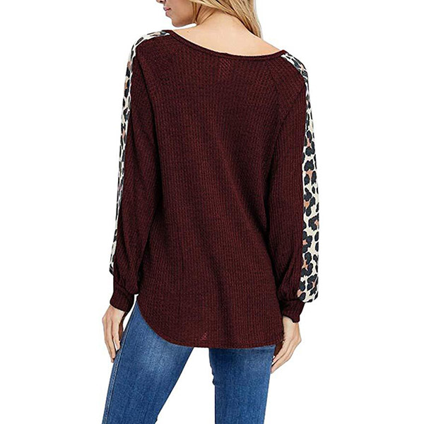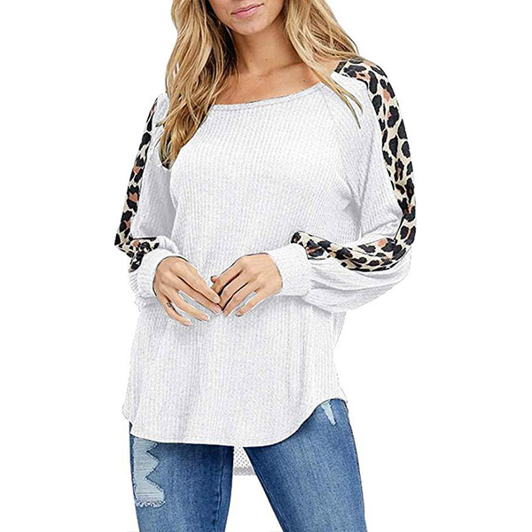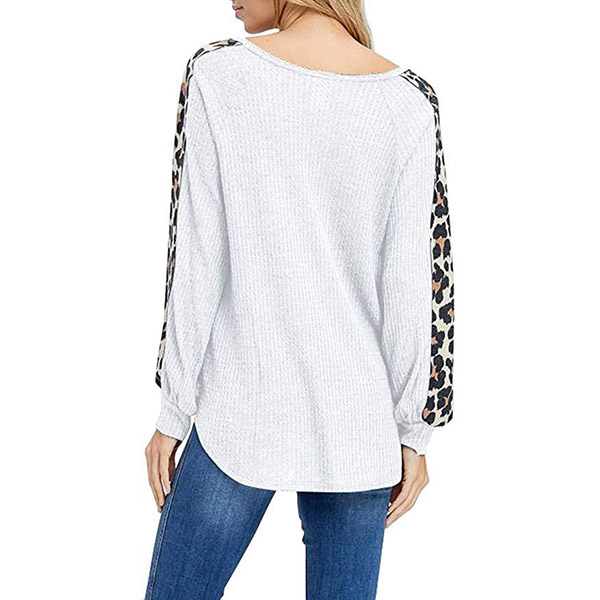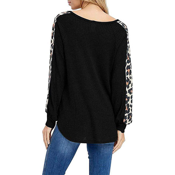 Fashion Leopard Printed Long Sleeve Round Neck T-shirt