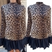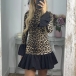 Fashion Leopard Printed Long Sleeve Ruffle Hemline Mini Dress