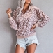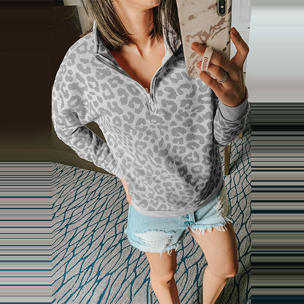 Fashion Leopard Printed Long Sleeve Stand Collar Sweatshirt