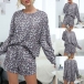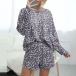 Fashion Leopard Printed Long Sleeve T-shirt + Shorts Two-piece Set