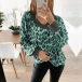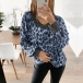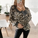 Fashion Leopard Printed Long Sleeve V-neck T-shirt