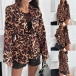 Fashion Leopard Printed Notch Lapel Long Sleeve Self-tie Blazer