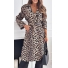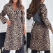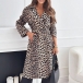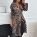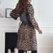 Fashion Leopard Printed Notch Lapel Long Sleeve Self-tie Jacket