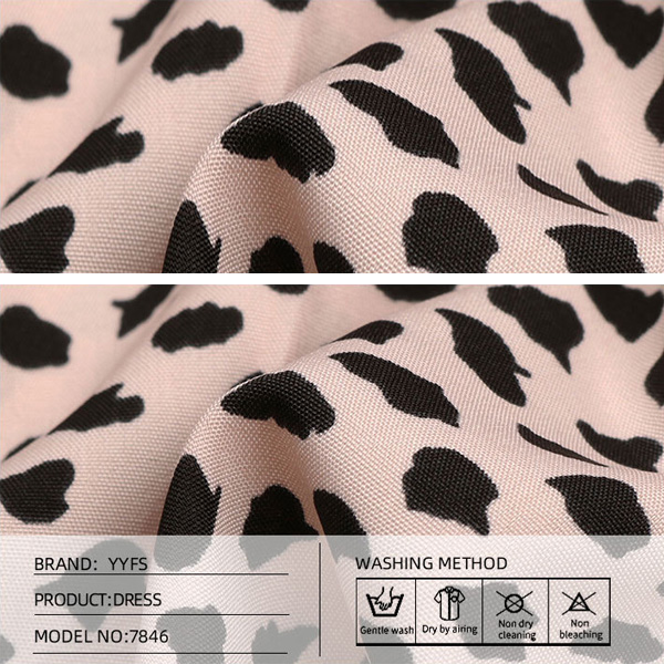 This dress features a bold leopard print design that is eye-catching and stylish. The self-tie pleated waistband adds a touch of elegance to the dress, while also allowing for a customizable fit. The dress is made from a lightweight and breathable fabric that drapes beautifully, creating a flattering silhouette. Wanna have a try?