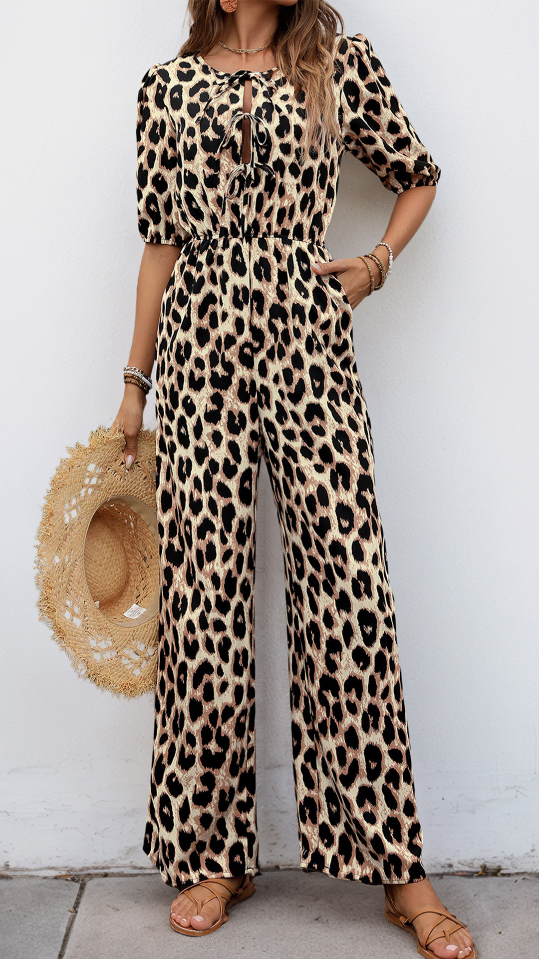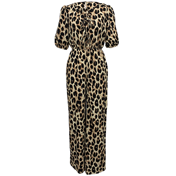 This jumpsuit features a self-tie crew neckline, short sleeves, a high-rise design and leopard print adds a touch of wild and edgy sophistication to the jumpsuit, creating a bold and eye-catching look that is sure to turn heads. Wanna have one?