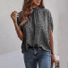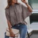 Fashion Leopard Printed Self-tie Mock Neck Batwing Sleeve Shirt