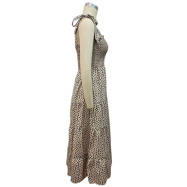 Fashion Leopard Printed Self-tie Smocked Tiered Dress