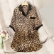 Fashion Leopard Printed Short Sleeve Notched Lapel Loose Nightwear Dress
