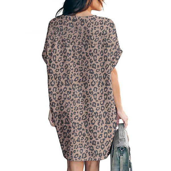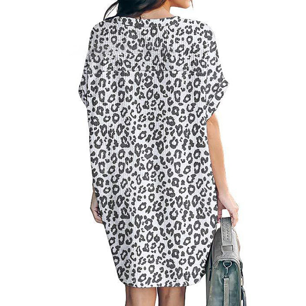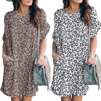 Fashion Leopard Printed Short Sleeve Round Neck Loose Dress