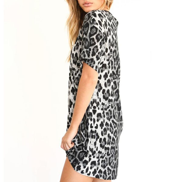 Fashion Leopard Printed Short Sleeve Round Neck Loose T-shirt