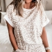 After taking the bath,you can just slip into this two-piece set to have a relaxed and comfortable time. The leopard printed details will make it look so stylish and eye-catching. Including a short sleeve round neck loose top and a shorts,this two-piece set is perfect fit for your home time and sleeping time in these summer days.