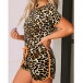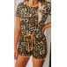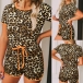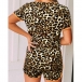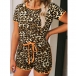 Fashion Leopard Printed Short Sleeve Round Neck T-shirt + Shorts Two-piece Set