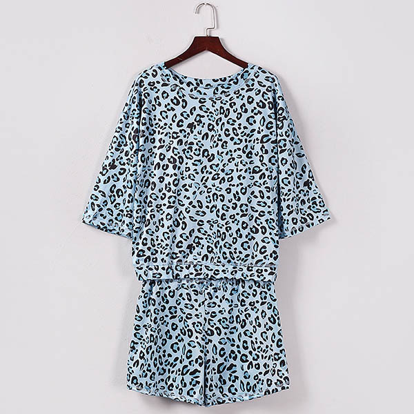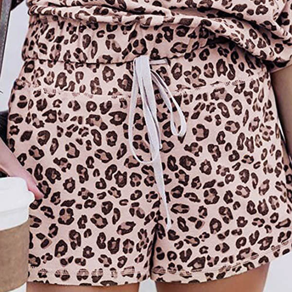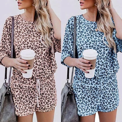 Fashion Leopard Printed Short Sleeve T-shirt + Shorts Two-piece Set