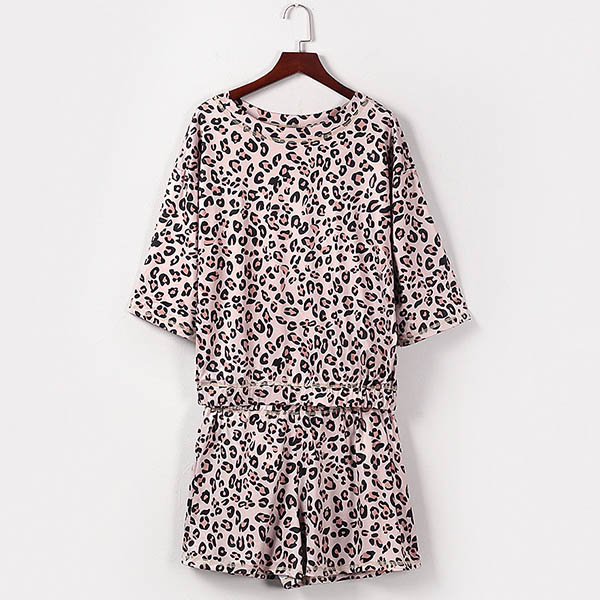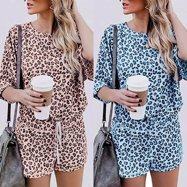 You deserve to have an utmost comfort during your home time and sleeping time. So we suggest you choosing this two-piece set. The leopard printed details make it look so eye-catching and stylish. Including a short sleeve round neck t-shirt and a shorts,this two-piece set is worth to arouse your attention.