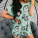Fashion Leopard Printed Short Sleeve V-neck Top + Shorts Two-piece Set
