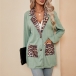 Fashion Leopard Printed Spliced Lapel Patch Pockets Jacket