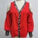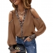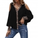 Fashion Leopard Printed Spliced Long Sleeve Open-shoulder V-neck Shirt