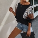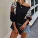 Fashion Leopard Printed Spliced Long Sleeve Round Neck T-shirt