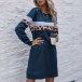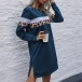 Fashion Leopard Printed Spliced Long Sleeve Round Neck T-shirt Dress
