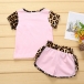 Fashion Leopard Printed Spliced Short Sleeve T-shirt + Shorts Children Set