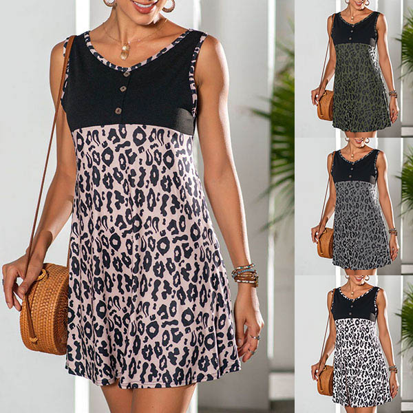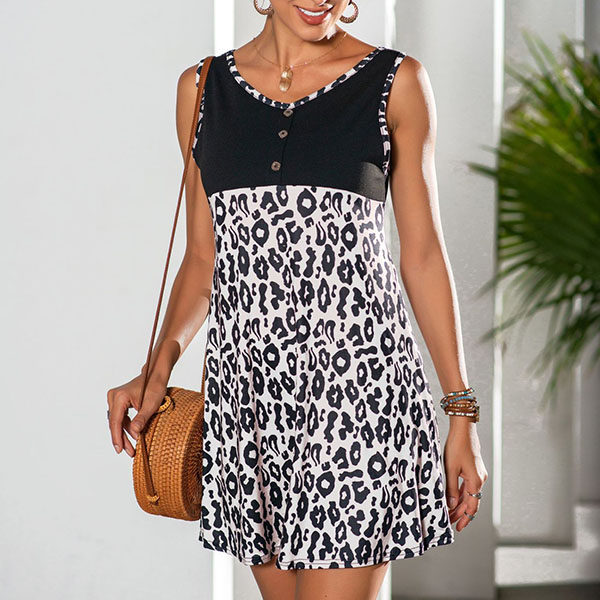 Your summer wardrobe calls for such a cozy yet stylish sleeveless dress. What makes this piece look so attractive? It owes to the leopard printed details. No matter for your daytime out or night dating,this dress can be your wise partner.