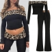 The standout feature of this set is the eye-catching leopard print spliced that adorns both the crop top and the flared pants. Wanna have a try?