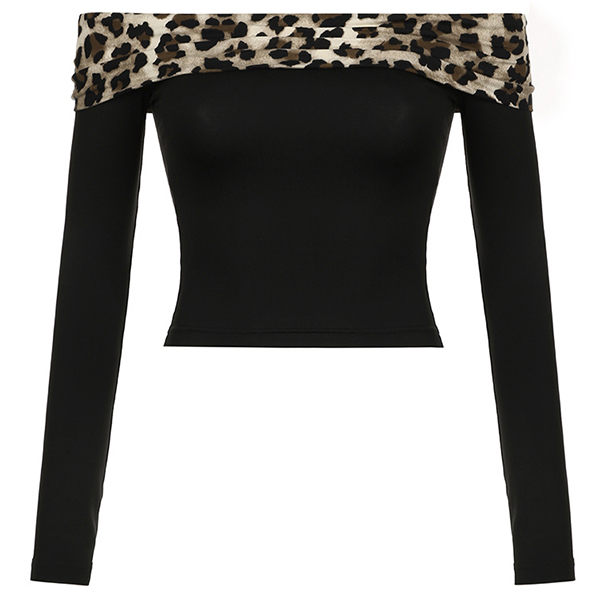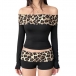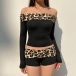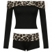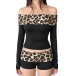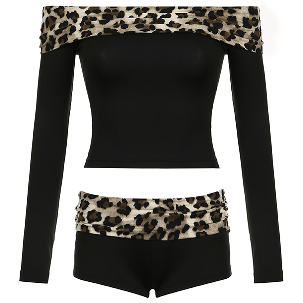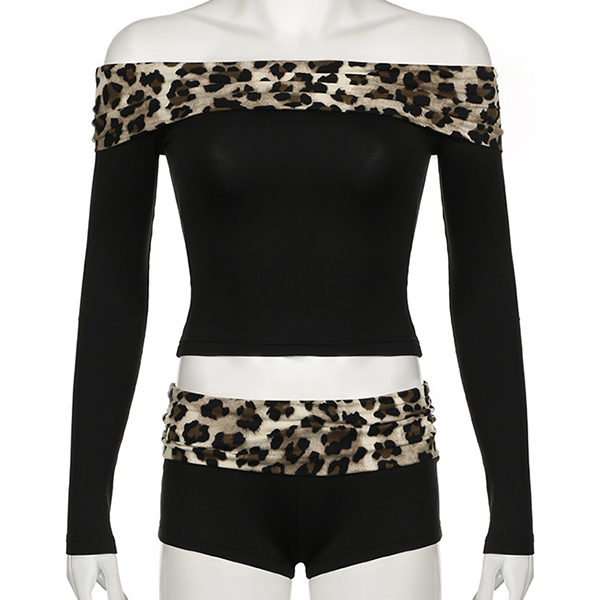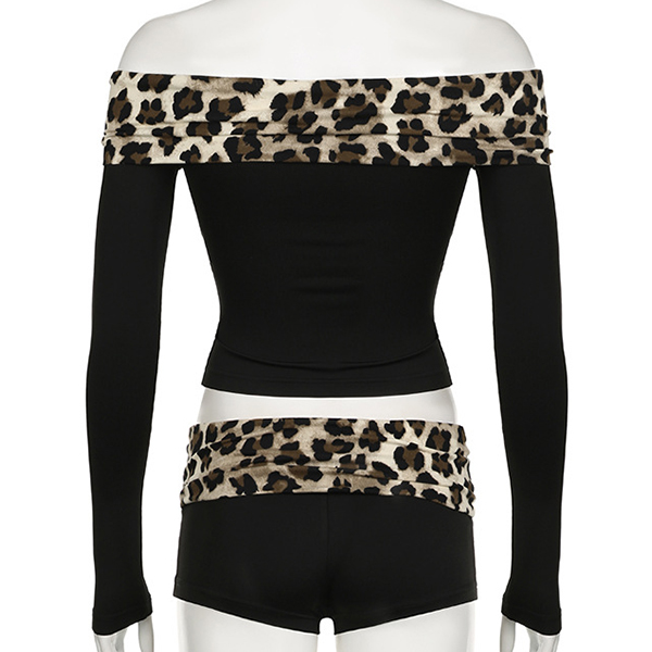 Fashion Leopard Printed Spliced Two-piece Set Consist of Off-the-shoulder Crop Shirt and Shorts