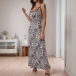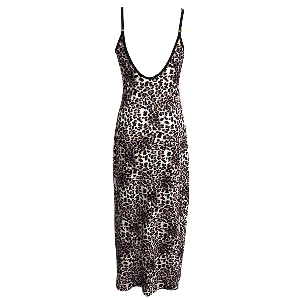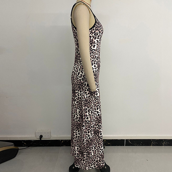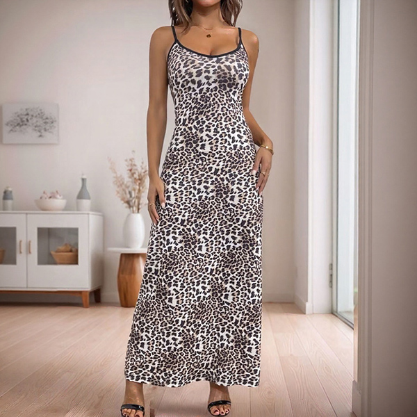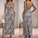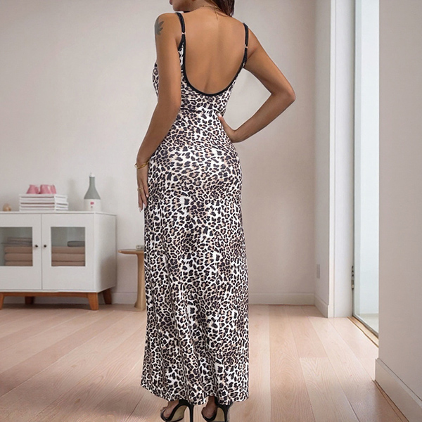 Fashion Leopard Printed Square Neck Backless Maxi Dress