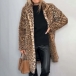 Fashion Leopard Printed Stand Collar Long Sleeve Plush Jacket