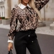 Fashion Leopard Printed Stand Collar Long Sleeve Shirt