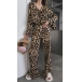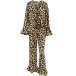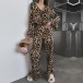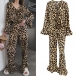 Fashion Leopard Printed Two-piece Set Consist of Crop Top and Wide-leg Pants