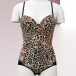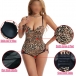 Fashion Leopard Printed V-neck Backless Shapewear Bodysuit
