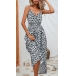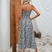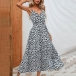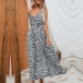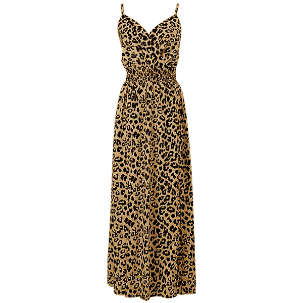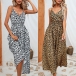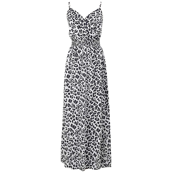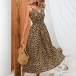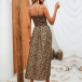 Fashion Leopard Printed V-neck Sleeveless Cinch Waist Midi Dress