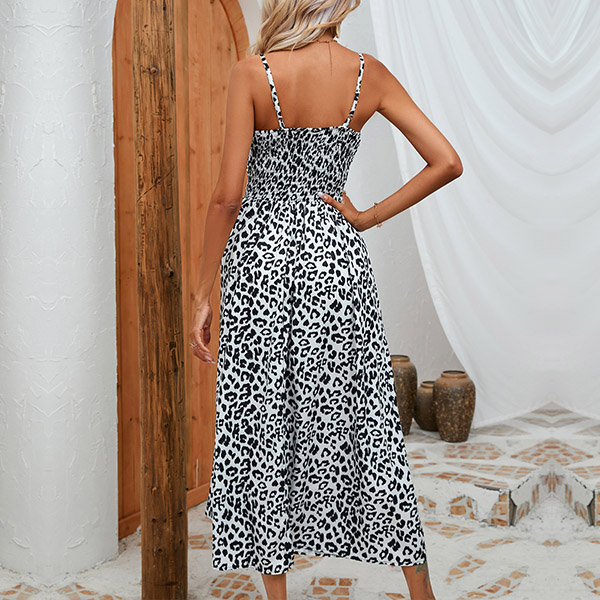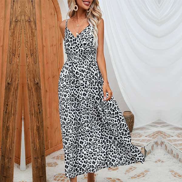 How about this dress? The leopard print design adds a bold and fashionable statement, creating a captivating and eye-catching look. It features sexy V-neck, smock waist for a perfect fit and midi length. This dress is versatile and can be styled in various ways. Pair it with sandals or sneakers for a casual and effortless look.