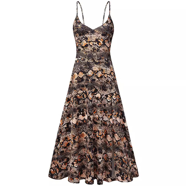 Fashion Leopard Printed V-neck Slit Mini Dress
