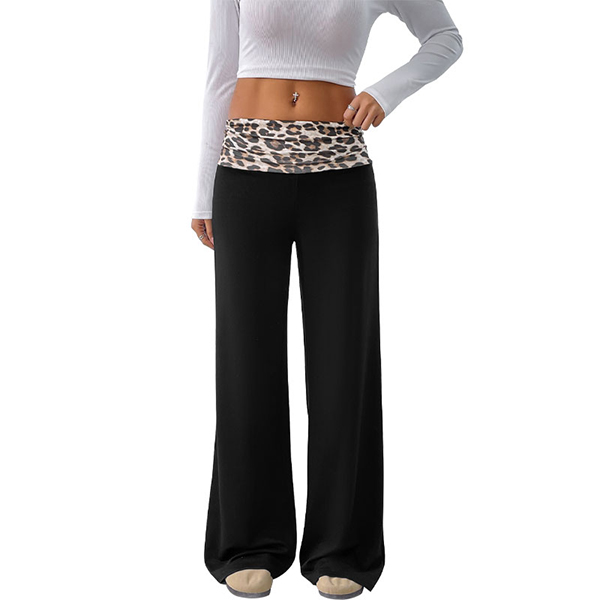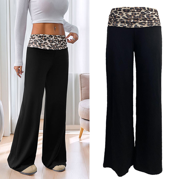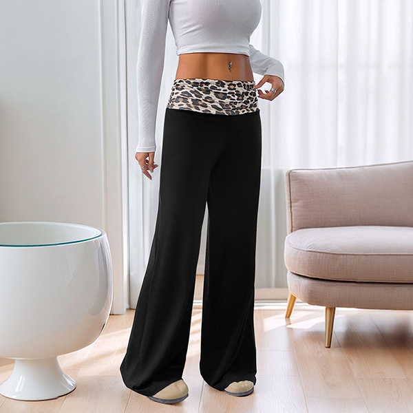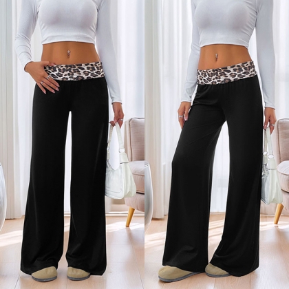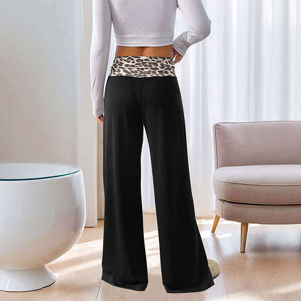 Fashion Leopard Printed Waist Straight-cut Pants