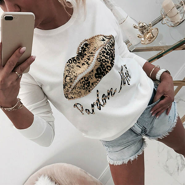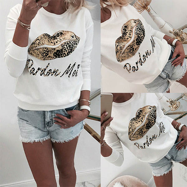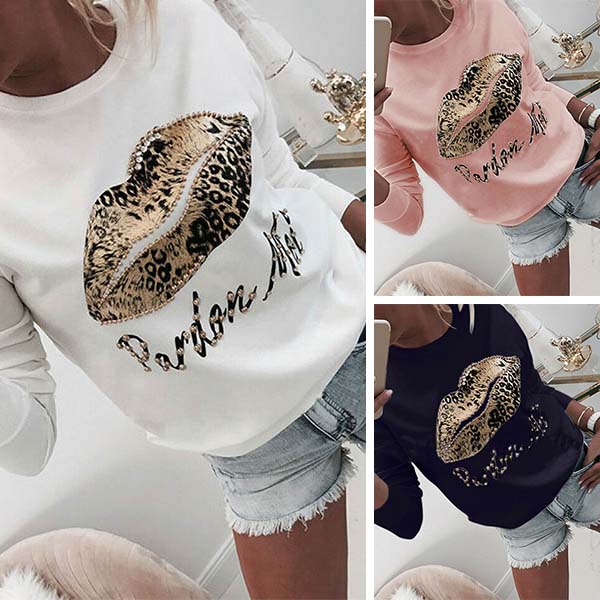 As for a simple,casual and relaxed style,you can simply count on this long sleeves shirt. The leopard lip printed pattern design makes this piece look so chic and eye-catching,while its soft and breathable fabric can offer you a comfortable day. No matter matching with a shorts,skirts or jeans,you can look fashionable enough!