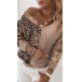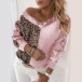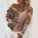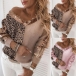 Fashion Leopard Sequin Spliced Long Sleeve V-neck Knit Sweater Top