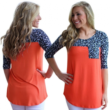 Loose silhouette with comfort fabric,this t-shirt can go a long way in your closet. Leopard spliced style,
