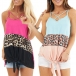 Fashion Leopard Spliced Knotted Hem Sling Top