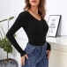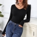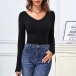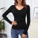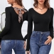 Fashion Leopard Spliced Lace-up Bow-knot Long Sleeve V-neck Slim Fit T-shirt